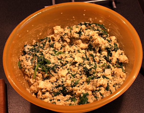 Špenát omyjte a vymačkejte z něj co nejvíc vody. Nakrájejte na menší kousky.