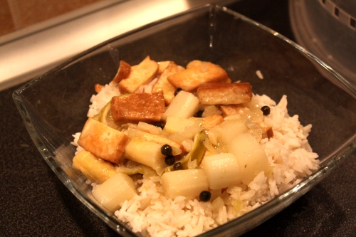 Dochuťte rybí omáčkou a podávejte s rýží a limetou (případně přidejte pár plátků limety rovnou k rýži, když ji vaříte).
