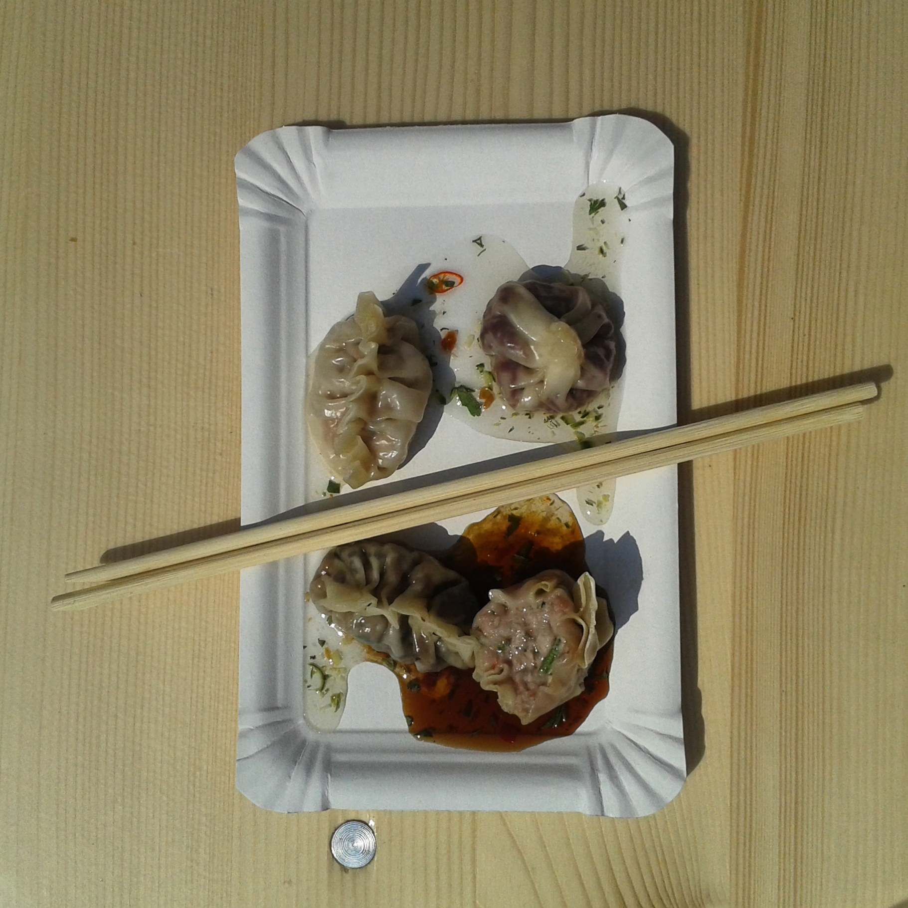 Pak ovšem došla řada na božské asijské knedlíčky dim sum, které si všichni chválí, na které jsem nedokázala stát frontu na Apetit pikniku a bez kterých jsem tentokrát odejít nechtěla. A dobře jsem udělala, byl to rozhodně jeden z vrcholů a tady mě mrzí nejvíc, že knedlíčci nemají stálou provozovnu, protože tam bych byla pečená vařená (napařovaná) 🙂 Udělali jsme rychlý průřez nabídkou: vepřový s krevetami, kachní, zeleninový a houbový. Vynikající byly všechny čtyři, nejvíc bych ale asi snědla kachních a houbových. Držím palce, aby se podnik časem rozjel.