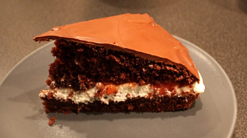 Korpus nechte vychladout a rozkrojte, při troše šikovnosti na tři díly.